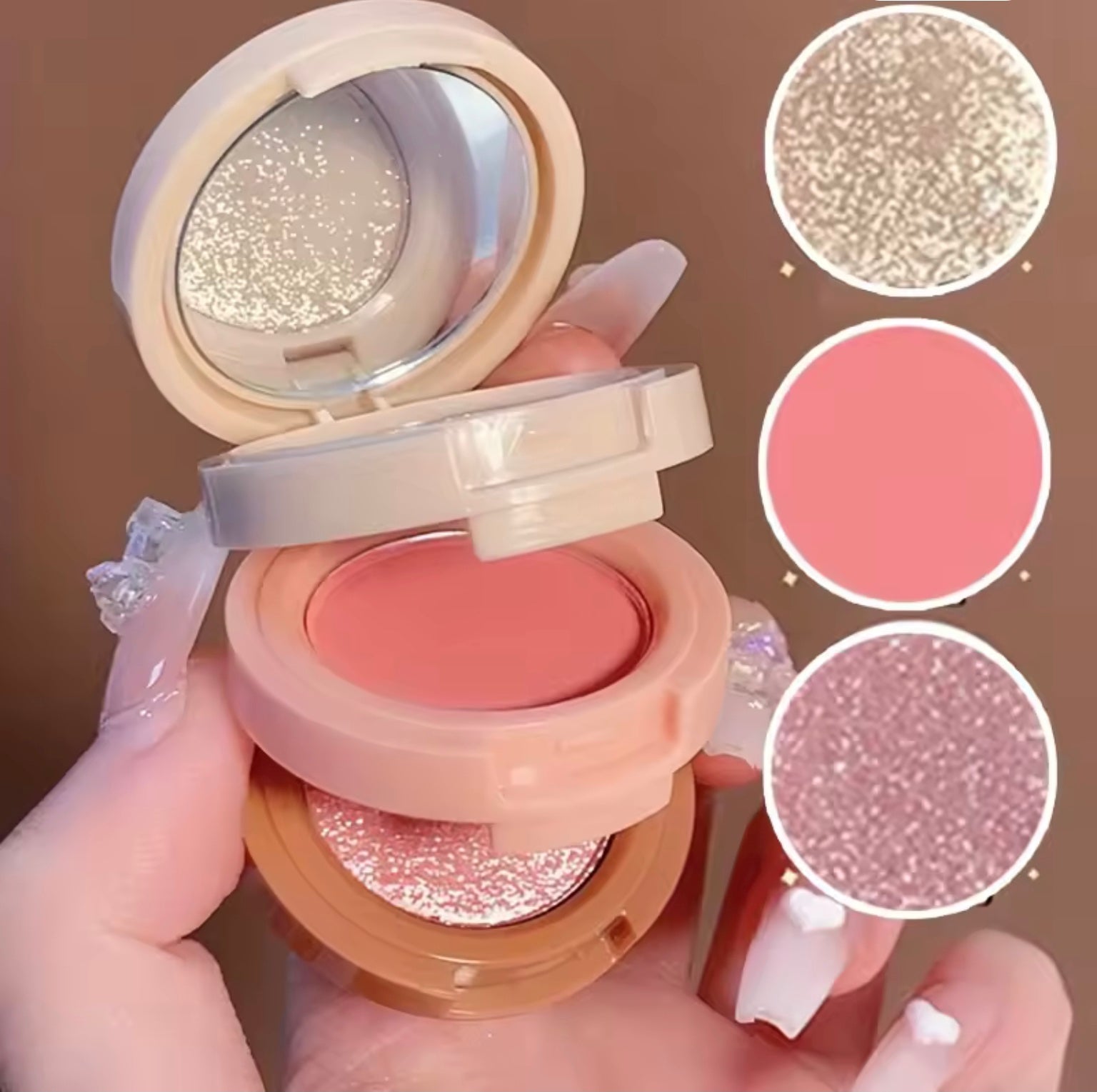 3-in-1 Makeup Palette, Matte & Pearlescent Texture Glitter Blush Highlighter Contouring 3-layer Palette