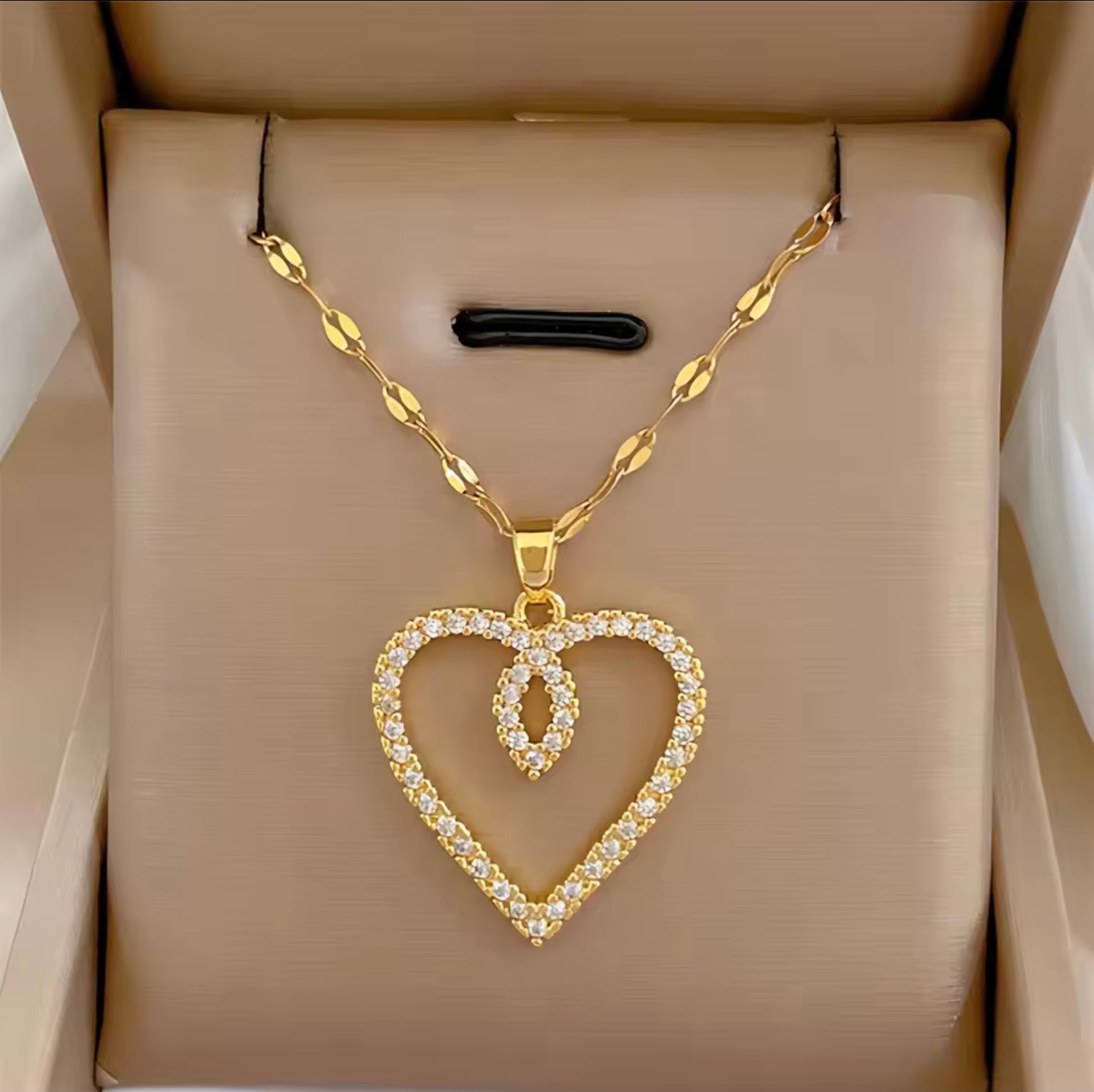 Trendy Heart Stainless Steel Zirconia Necklaces For Women Girls Love Gold Color Metal Necklace Party Birthday Daily Jewelry