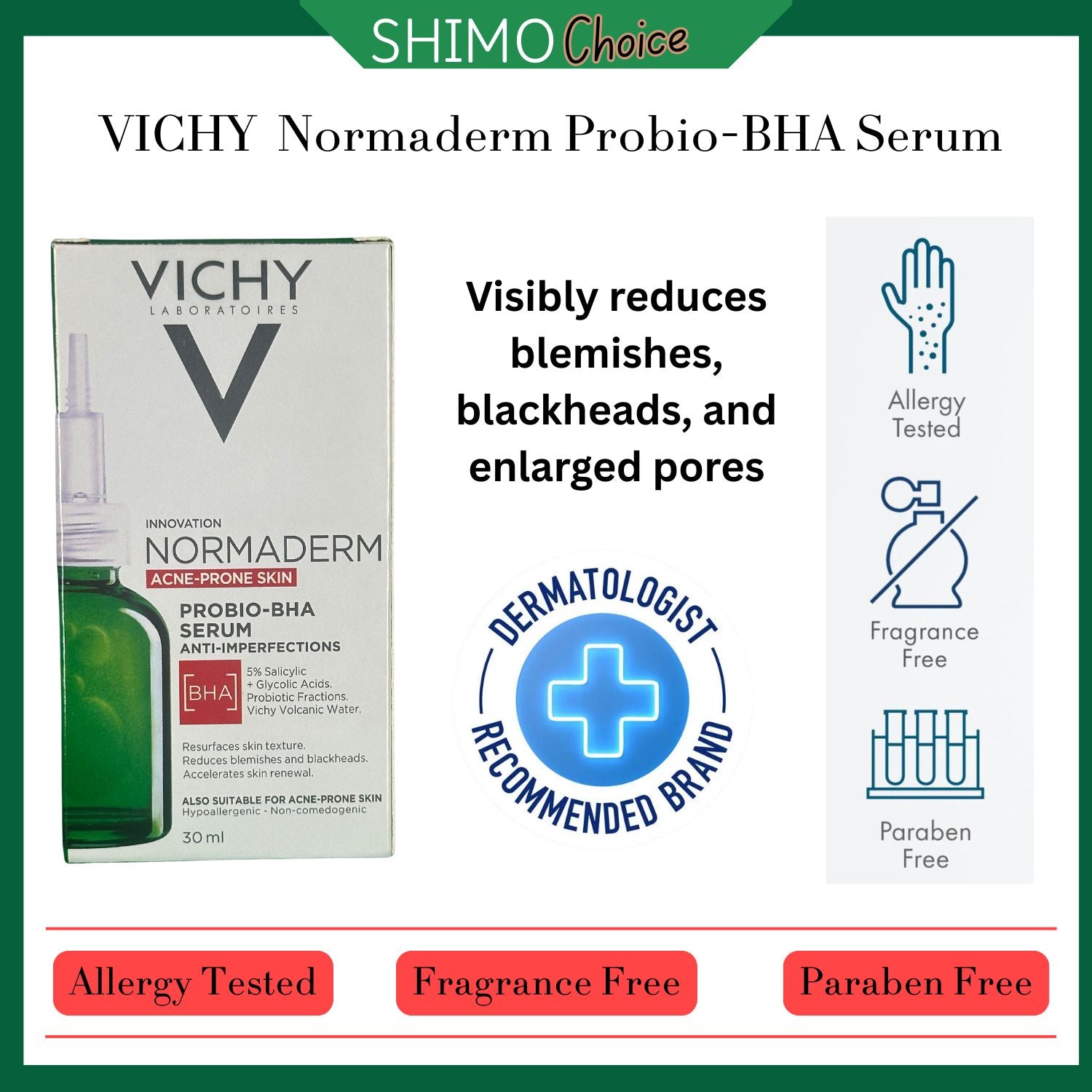 Formulated with 5% [Salicylic Acid + Glycolic Acid], Probiotic Fractions, and Vichy Volcanic Water, this advanced serum promotes gentle exfoliation while supporting the skin’s natural barrier and renewal process.