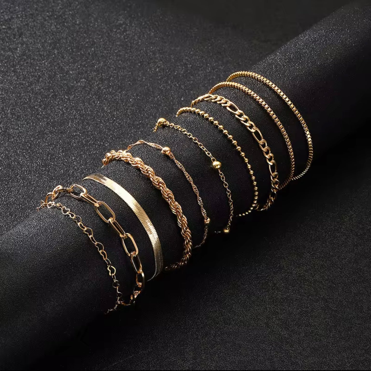 10 Pcs Vintage Statement Gold Color Flat Snake Chain Box Chain Bracelet Boho Multi-layer Metal Bracelet Women's Summer Jewelry