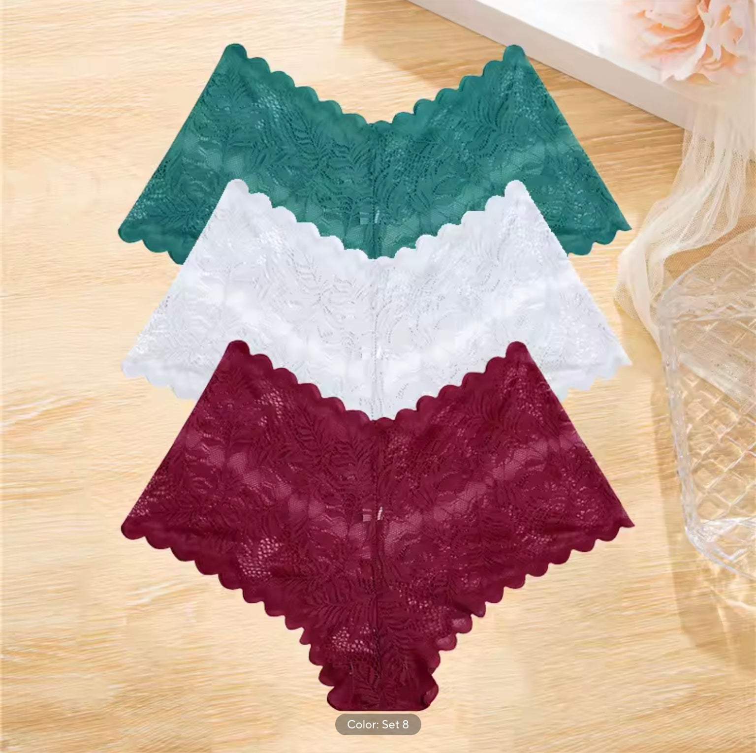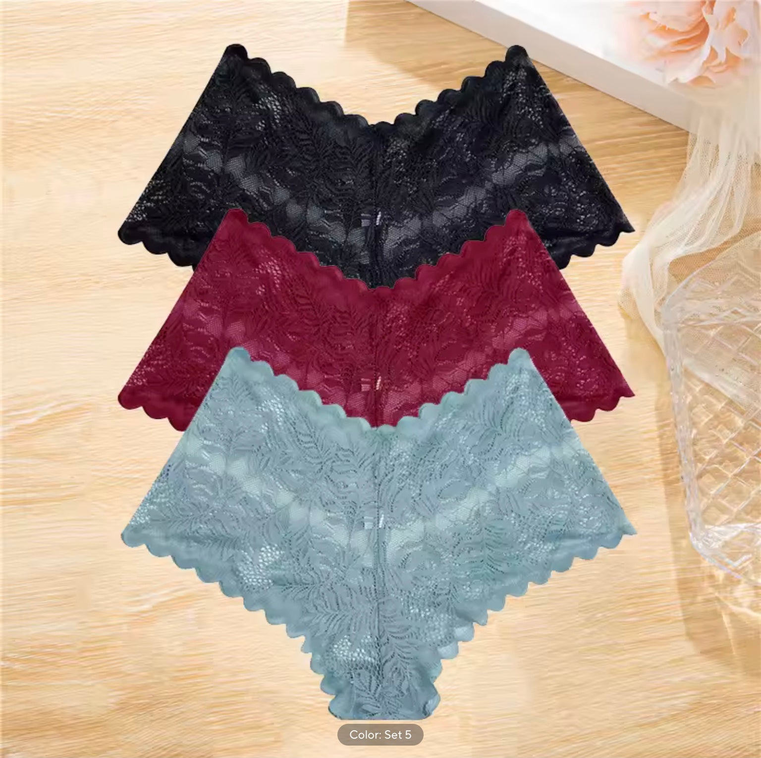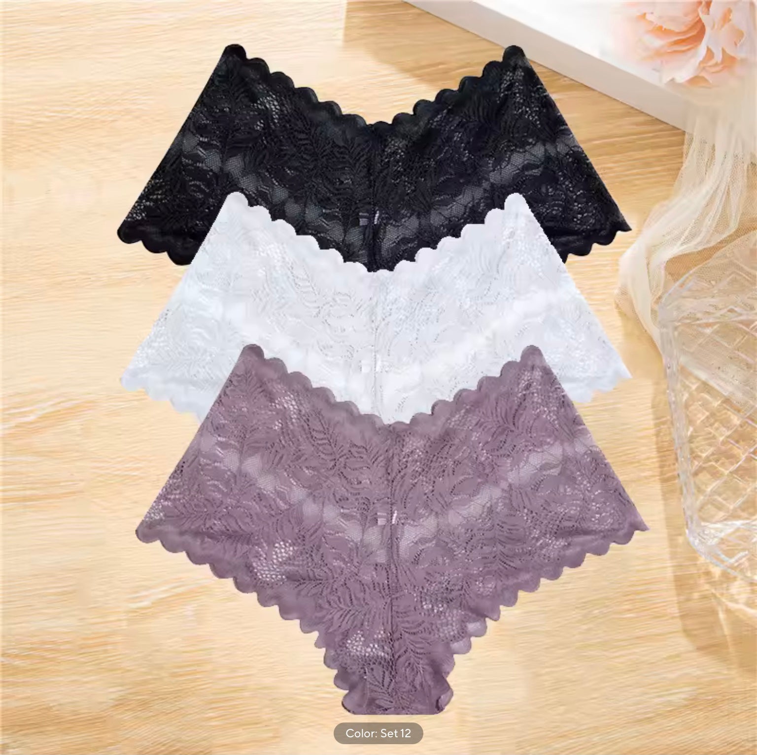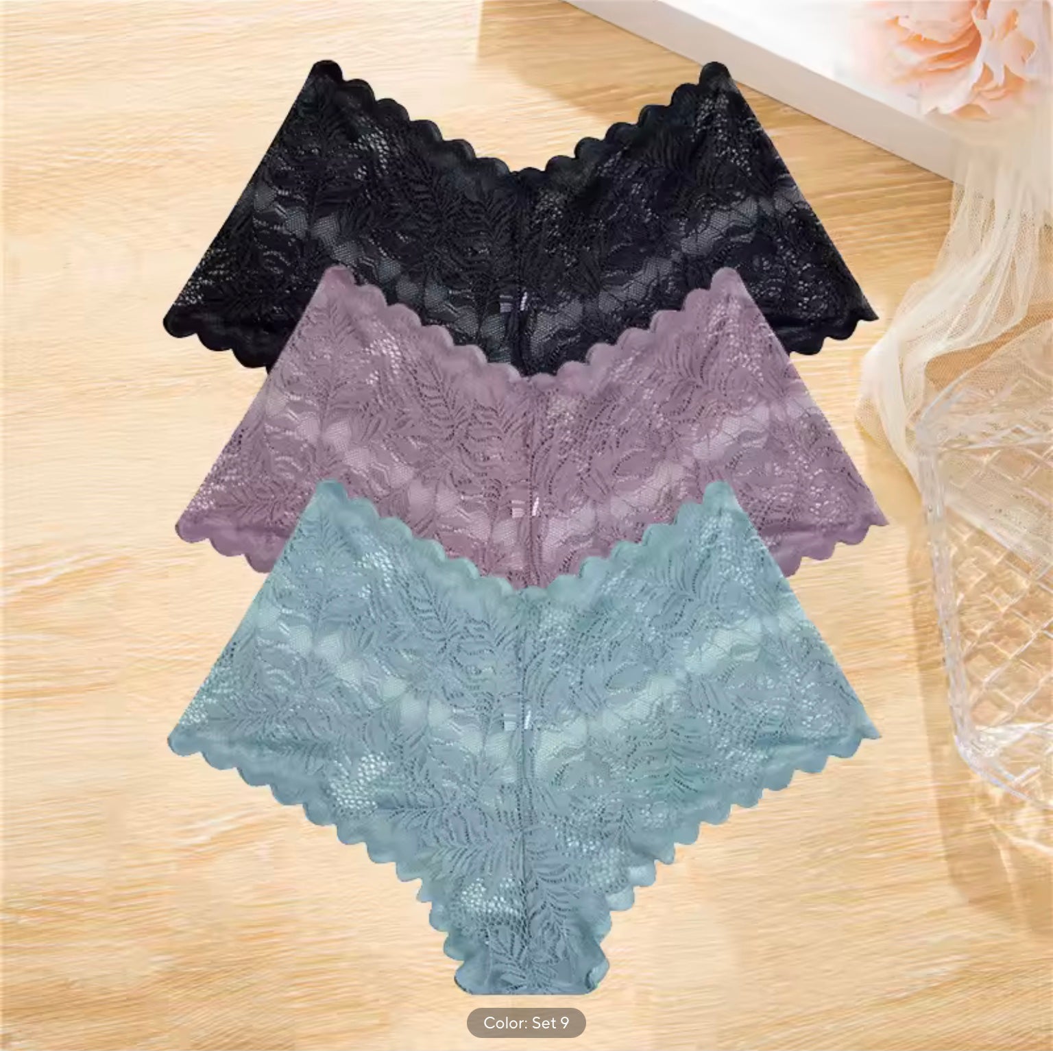 FINETOO 3Pcs/set Lace Boyshort Panties Women Low-Rise Floral Underwear S-XL Girls Sexy Panties Ladies Lace Underpants Lingerie