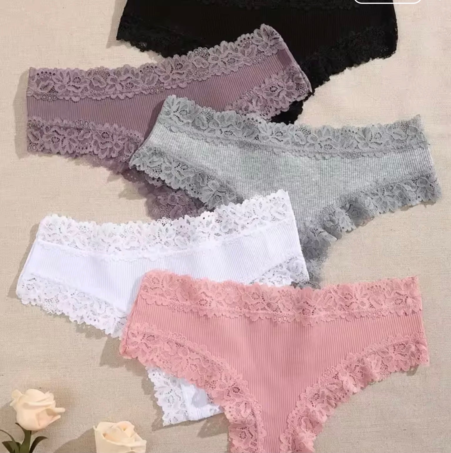5Pcs/set Women Cotton Panties Floral Lace Intimate Underwear Trendy Patchwork Lace Briefs Female Soft Underpants Lingerie S-XL.