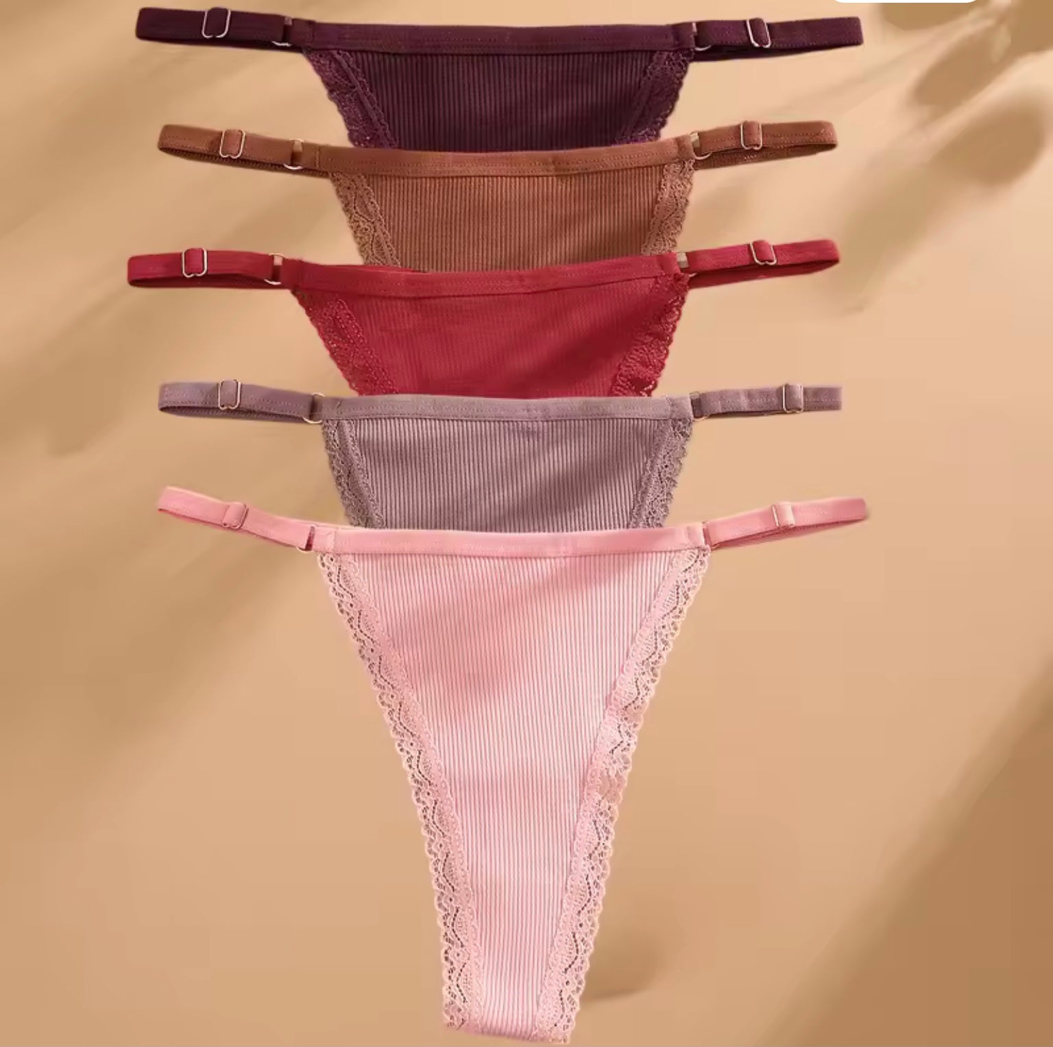 5PCS/Set Cotton Panties Sexy G-String Women's Underwear T-Back Lingerie Femme Underpants Briefs Adjustable Waist Thong Intimates.